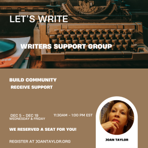 Calling all wordsmiths and word artisans. NO MORE Isolation! We are here to support you. Join our supportive community from December 5th to December 19 th. We’ll be meeting on Zoom on Wednesdays and Fridays in December from 11:30 a.m. to 1:00 p.m. EST (8:30 a.m. to 10:00 a.m. PST). Please note that your payment serves as your registration. The Zoom meeting link will be emailed after registration.